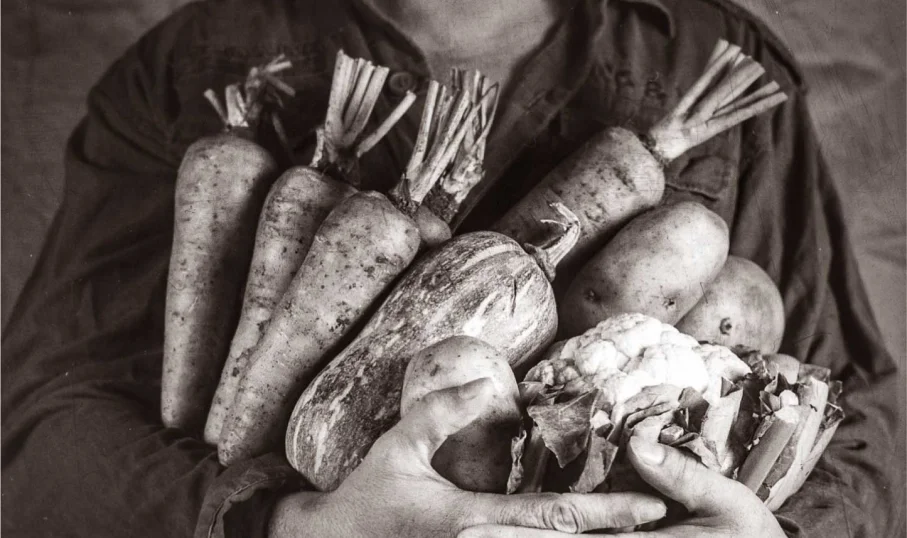 A man holding a bunch of vegetables.
