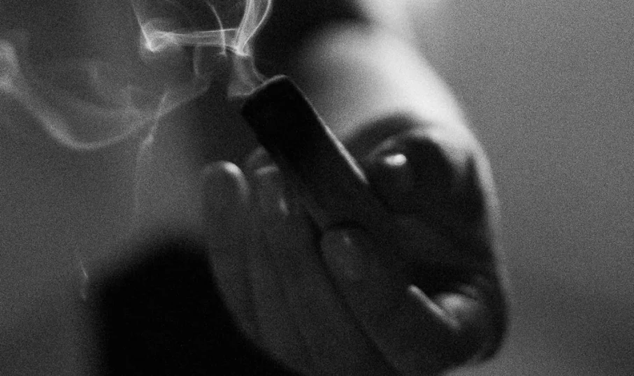 Hand holding a smoking incense stick.